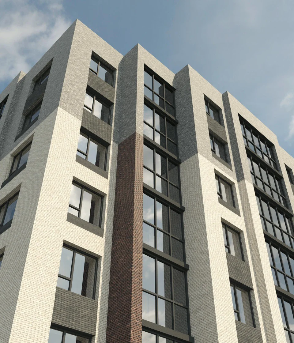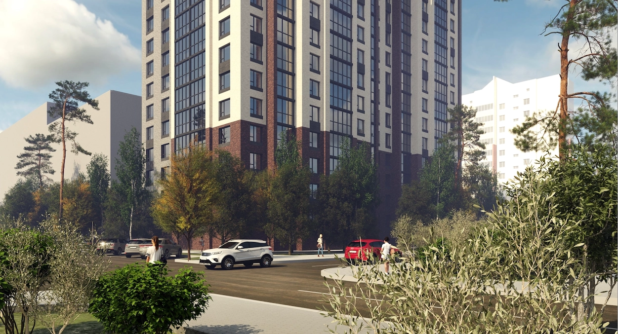 Архитекторы продумали современные фасады, выполненные из керамического кирпича разных оттенков, 16 этажей и стильные стеклянные входные группы, благодаря которым будет много солнечного света